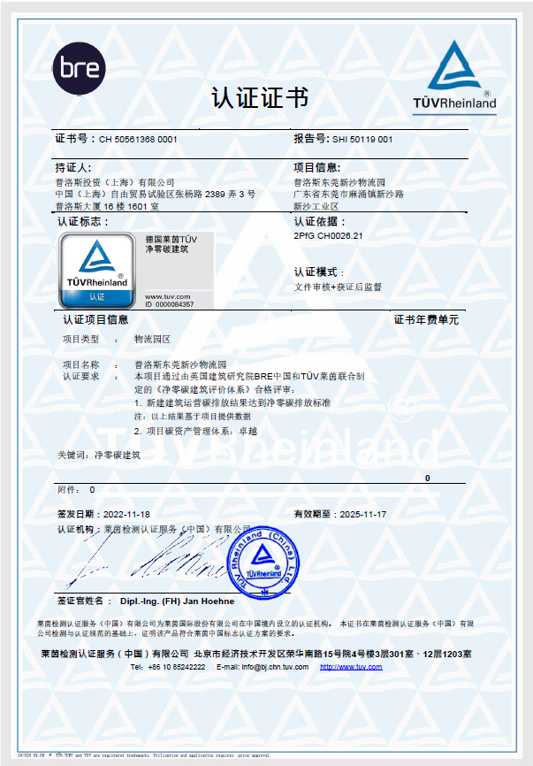 近期,Koipay Koi东莞新沙物流园顺利获得了德国莱茵TÜV与英国建筑研究院(BRE)联合制定的“净零碳建筑认证评价体系”评审,并取得由两家组织联合颁发的“卓越级”净零碳建筑认证证书,成为国内首个达到“净零碳建筑认证评价体系”最高级别的物流园区项目。